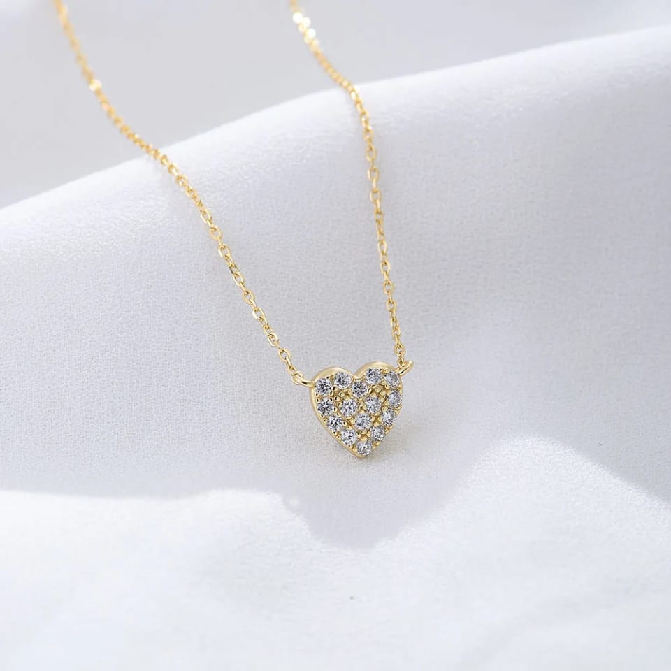The Amour Pavé Heart Necklace is designed to capture love in its most elegant form. Featuring a delicate heart pendant adorned with shimmering pavé stones, this necklace rests gracefully along a fine gold-plated chain for a refined, feminine finish.