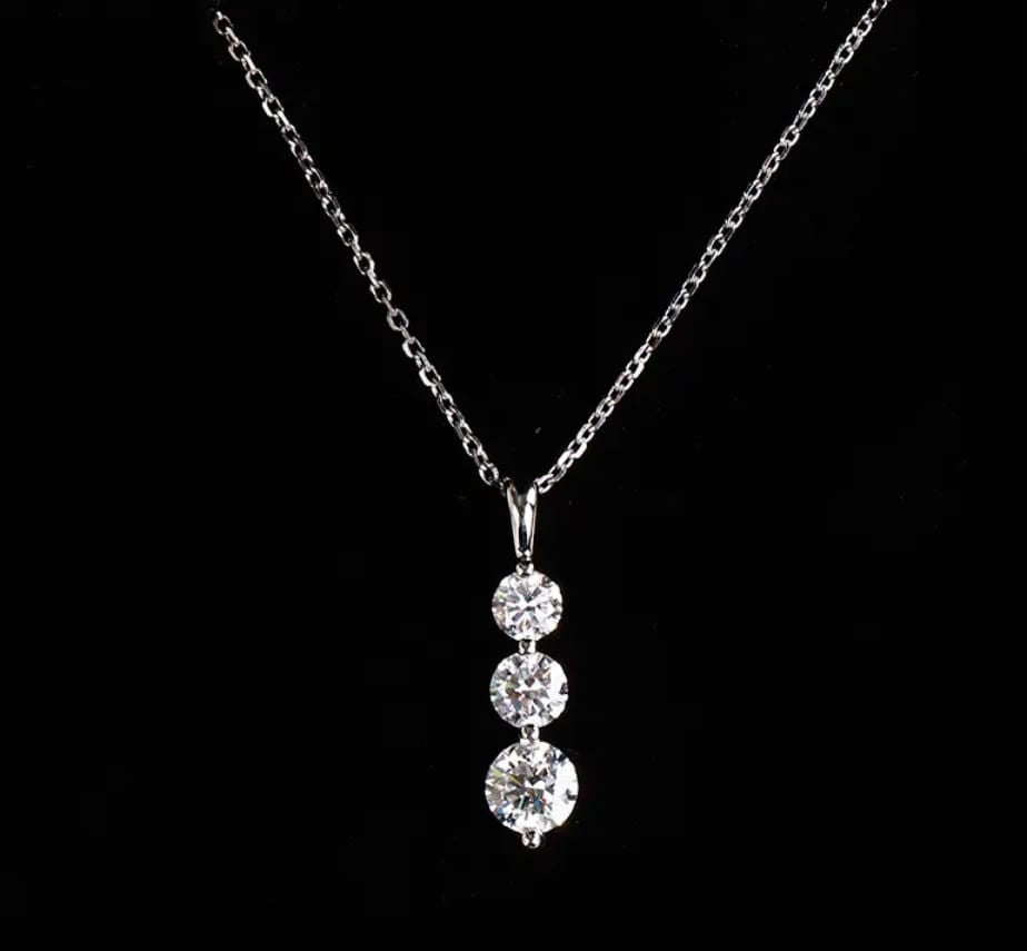 The Lumière Drop Necklace features three perfectly aligned round-cut stones that cascade effortlessly, creating a timeless silhouette that catches the light from every angle. Delicate yet striking, this piece was designed for women who appreciate elegance without excess.